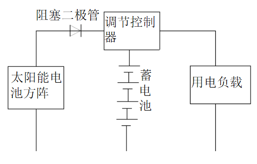 下圖為一獨立光伏發(fā)電系統(tǒng)的結(jié)構(gòu)示意圖。光伏發(fā)電系統(tǒng)由太陽能電池、阻塞二極管、調(diào)節(jié)控制器和蓄電池組成。