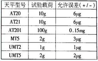 *試驗載荷用全載的天平主要有:AE240,AE200,AG104,AT20,AT21,AT200,AT201,MT5,UMT2,UMT5。