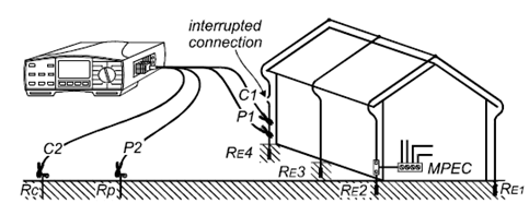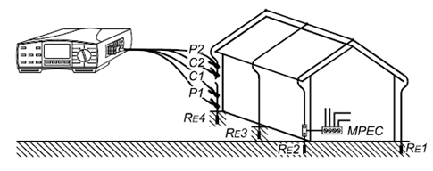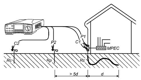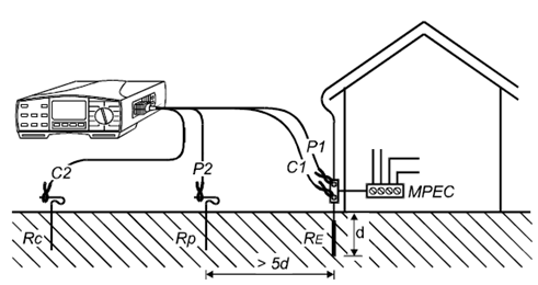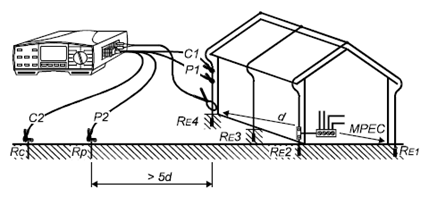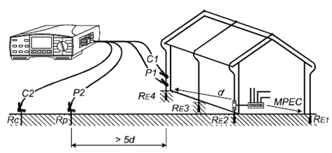 只有一個(gè)接地電極,因此測(cè)量非常簡(jiǎn)單。建議使用4線測(cè)試法而不是3線測(cè)試法,因?yàn)?線測(cè)試法不用考慮測(cè)試夾的接觸電阻以及待測(cè)電極表面的生銹情況,這些不會(huì)對(duì)4線測(cè)試法造成影響。