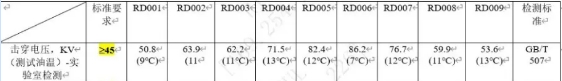 本次測試嚴(yán)格按照該標(biāo)準(zhǔn)進(jìn)行,油介電強(qiáng)度測試數(shù)據(jù)如下:
